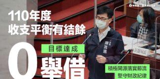 高雄110年度「零舉債」目標  陳其邁做到了