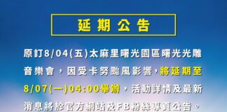 卡努颱風增强 太麻里曙光園區光雕音樂會延至8/7舉行