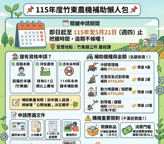 竹東鎮長郭遠彰挺農友 農機補助26台最高可領 1 萬元