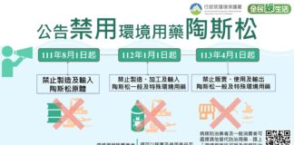 陶斯松及甲基陶斯松為環境用藥禁用成分