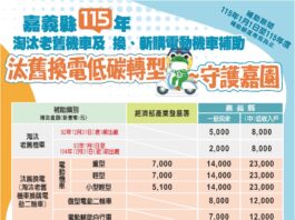 嘉義縣115年汰舊換電動機車 最高補助2萬1千元
