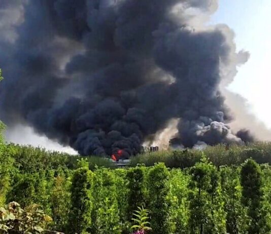 影/田尾鐵皮成衣廠發生火警 濃煙直竄天際、鐵皮燒到變形塌陷