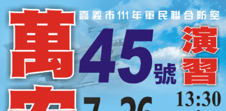 嘉義市萬安45號演習本月26日舉行 籲請市民配合管制疏散