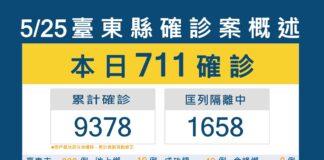 台東25日新增新冠肺炎確診711例 監所群聚再增兩起