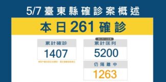台東7日新增確診261例 養護機構再傳群聚染疫案例