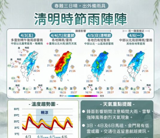 清明時節雨陣陣! 一圖看清明連假天氣「西半部雨下到發紅」