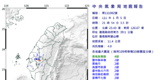 今日連兩震!嘉義晚間9點54分發生芮氏規模4地震