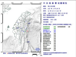 影音/0326中午規模4.7地震 最大震度在臺東4級