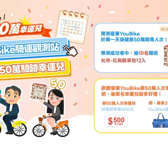 YouBike累計騎乘人數將破50萬大關 臺東縣府送好禮