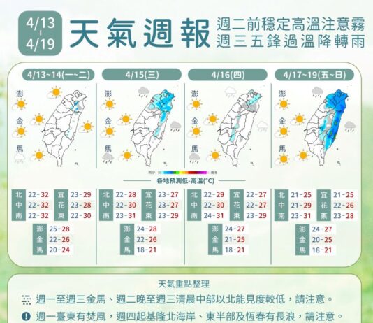 一圖看一周天氣 周二前高溫上看36度 周三通過溫降轉雨