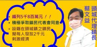 振興經濟消費津貼案終獲通過 頭城鎮民每人可領2000元