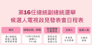正副總統電視政見發表會日程出爐 共舉辦4場