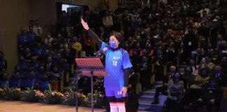 雲林縣長宣誓就職 張麗善穿足球服要踢出好球