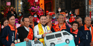 土地公聖誕 侯友宜參拜賀壽 深丘福德宮捐市府消毒車、救援專車
