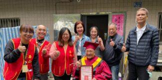 關懷獨居長者 華山基金會為百歲人瑞穿戴博士服慶生