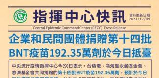 民間捐贈疫苗 又192.35萬劑抵臺