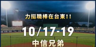 中職前進臺東 中信兄弟三連戰10/17-19登場