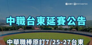 受颱風杜蘇芮影響 中華職棒宣布台東場賽事調至10/17-19原地舉行
