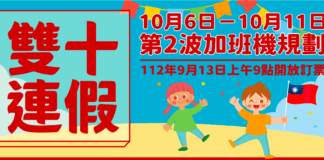 第二波雙十臺金機票 9/13 上午9時開放訂位