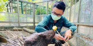 壽山動物園新生冠豪豬「小芋頭」滿月 吃貨萌樣曝光
