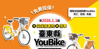 保障騎乘者安全 臺東YouBike公共自行車傷害險新制元旦上路