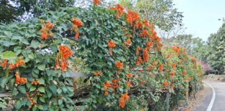 竹東鎮公所攜手企業志工 頭前溪河濱生態公園打造「炮仗花牆」新地標