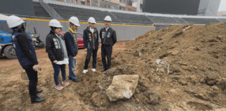 新聯線政團會勘棒球場 廢棄物挖出寶特瓶