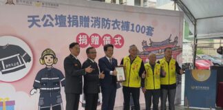 新竹天公壇回饋社會 捐贈100套消防衣褲