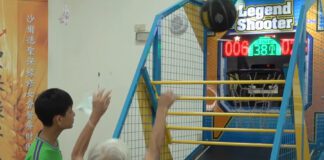 聖保祿醫院走入社區推廣樂齡運動 國中生陪長輩嗨玩投籃機