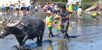 影音/社頭鄉農會推動食農教育 學童擔著傳統割稻飯體驗傳統插秧