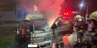 影音/國五南下羅東交流道附近深夜小貨車火燒車