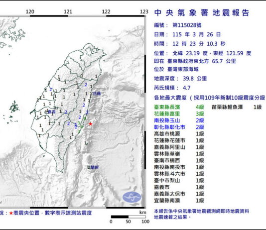 影音/0326中午規模4.7地震 最大震度在臺東4級