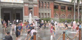 竹市府前廣場開放噴水 水槍大戰一觸即發