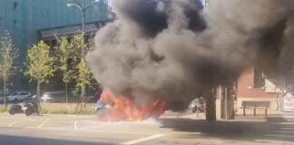 影音/烤地瓜車邊燃燒邊狂奔 直衝消防局求助滅火