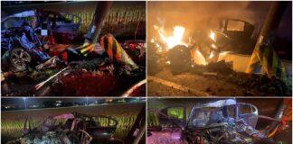 影音∕自小客撞斷電桿起火 駕駛當場燒成焦屍